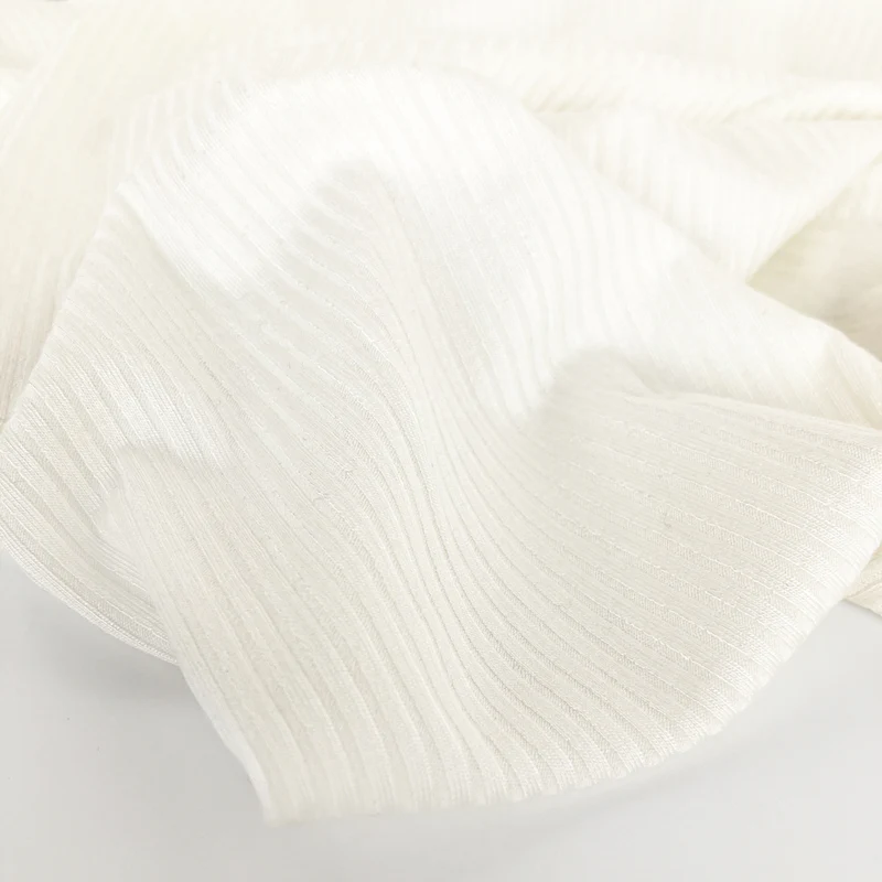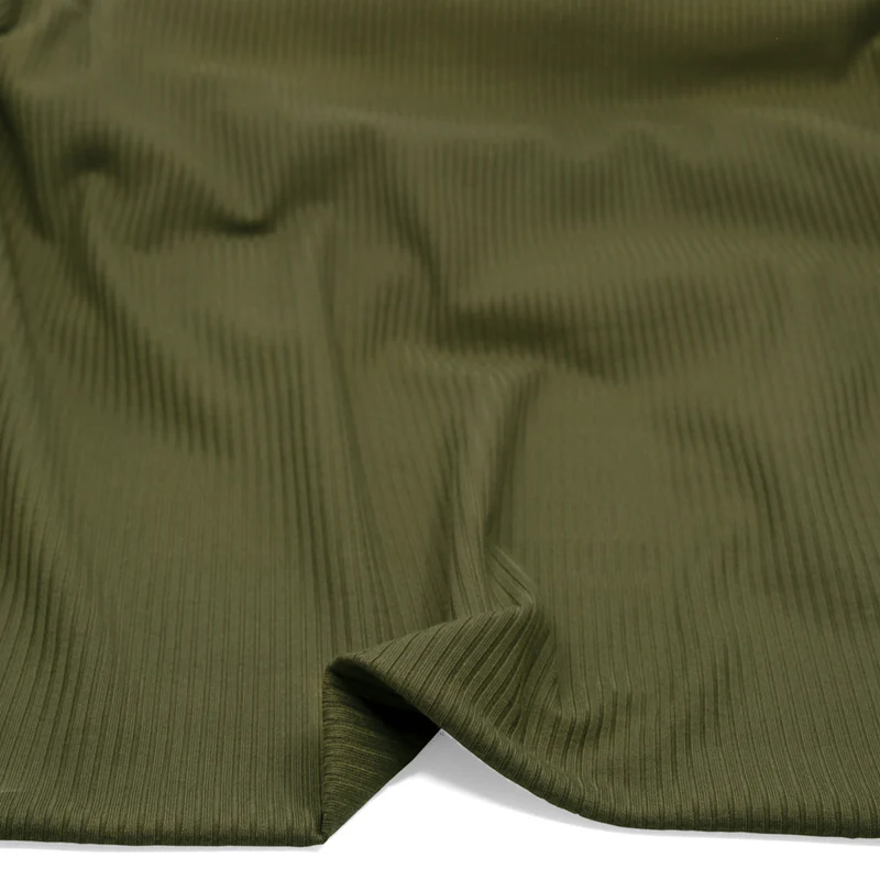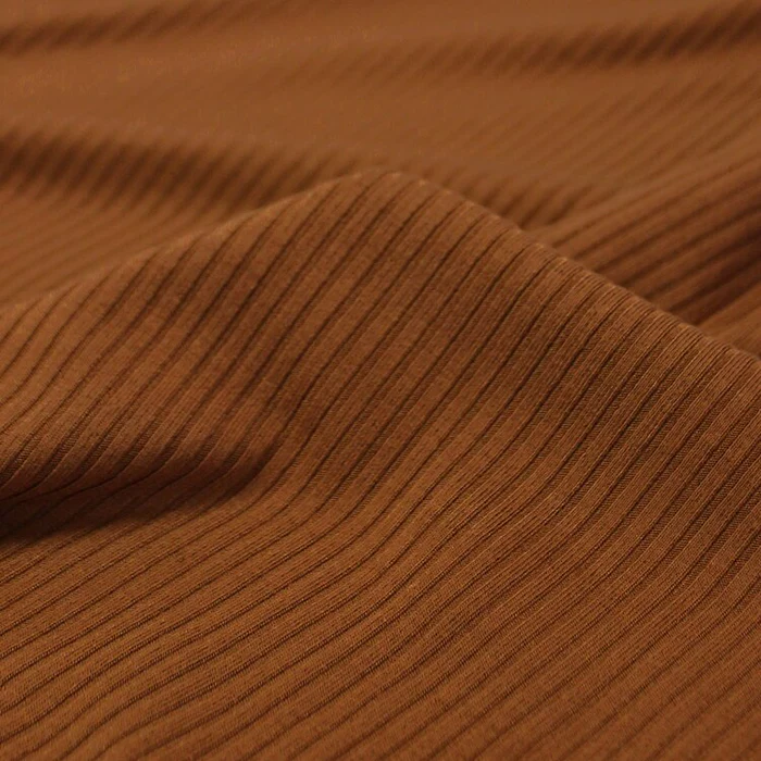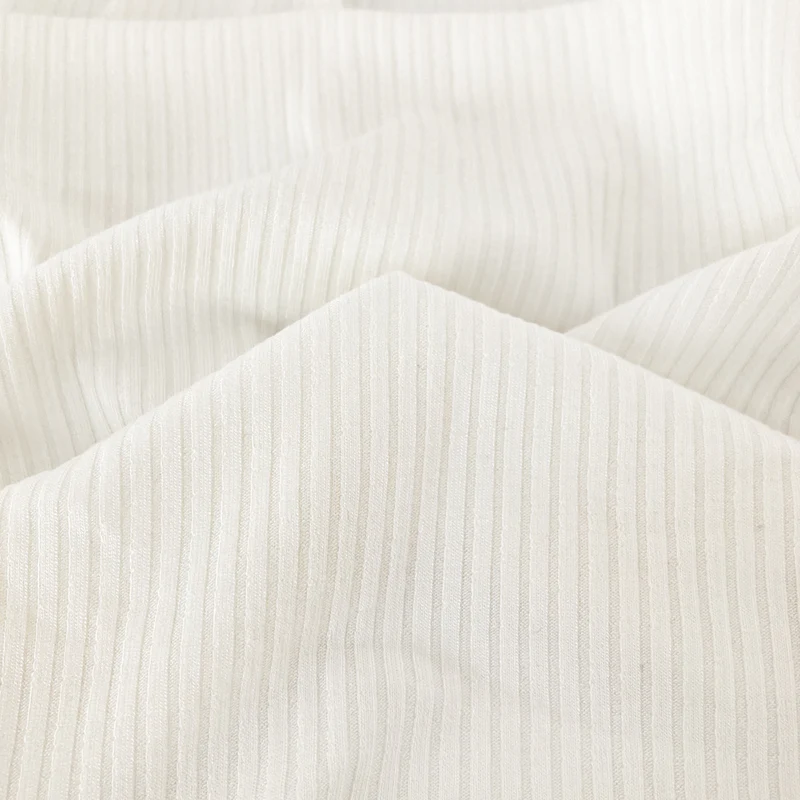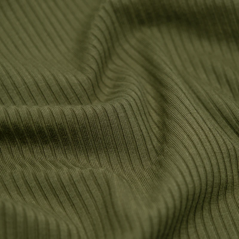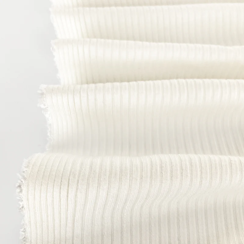 Knitted rib fabric features raised vertical ribs that provide natural stretch and excellent recovery. It is soft, flexible, and form-fitting, making it ideal for cuffs, collars, waistbands, and body-hugging garments.